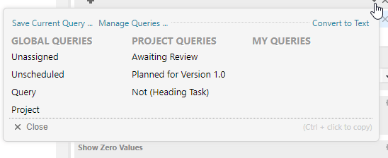 To see now the “true” query, we have to convert the selected query to text. Therefore we have to click on the “down-arrow” on the upper right and select “Convert to Text”.
