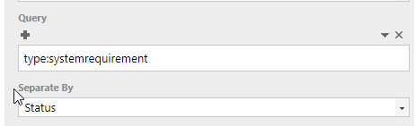 Now we selected all System Requirements. And if we add “Status” to the field “Seperate By”, then the widget will show all System Requirements separated by their status.