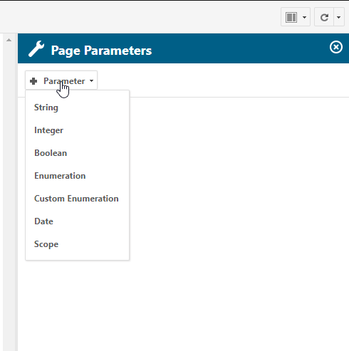 In this menu you can create a Page Parameter. They can be from different types. I will add an Enumeration (List) with all the existing work item types of the project.