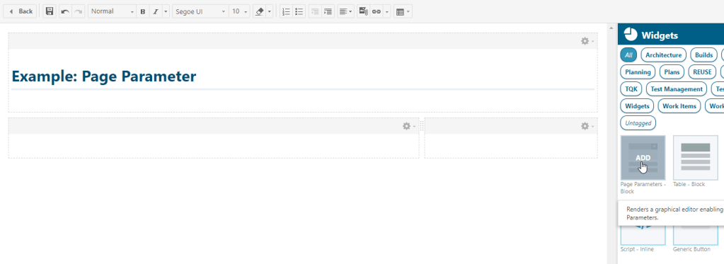 2. Insert Page Parameters Widget