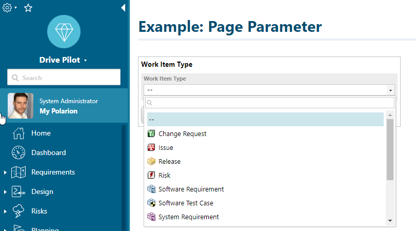 In our case (if the id of the Page Parameter is “Work_Item_Type”):