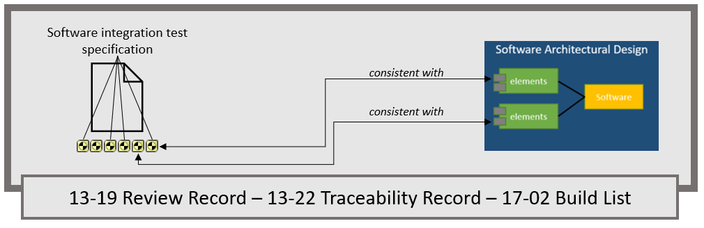 - established consistency and bidirectional traceability between the elements of the software architectural design and Test Cases within the software integration test specification and between Test Cases and test results; and